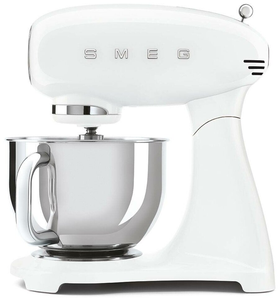 Планетарный миксер SMEG SMF03WHEU, выполненный в стиле 50-х годов, подчеркнёт индивидуальность интерьера и станет настоящим украшением Вашей кухни в квартире или загородном доме. Предназначен для приготовления кремов, муссов, соусов, пюре и жидкого теста. Применение специальных насадок позволяет существенно расширить ассортимент приготавливаемых блюд. С их помощью данную модель можно использовать в качестве тёрки или мясорубки, а также для приготовления различных блюд итальянской кухни.